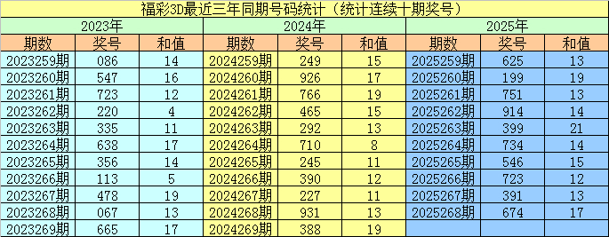 上期回顾:福彩3D第2025268期奖号:674。