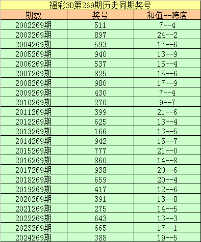 2024269期开奖号码:388