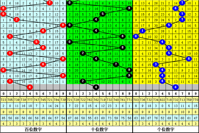 历年第296期排列三奖号中,开出次数最多三码为:0、6、9,本期注意号码:6。